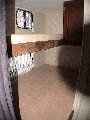 At the rear is a double bed with single bunk overhead including its own window and wardrobe. The expanded bath has its lavy outside next to the bedroom. All top amenities are included here. (See below)